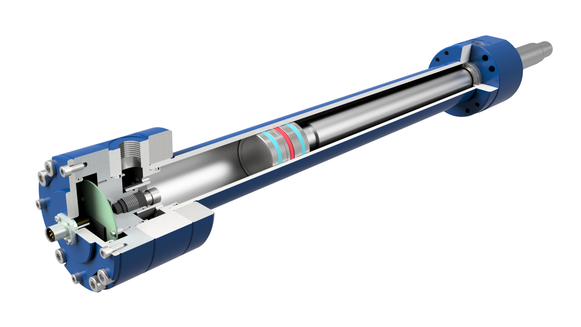 We have been developing and manufacturing customized solutions for piston position sensors for several years and are now progressing into high-volume industrial markets. The working principle of our unique technology is as follows: Electromagnetic waves are being emitted into the hydraulic cylinder using a proprietary antenna design. These microwaves are being reflected at the piston. The position and velocity of the piston is calculated by analysis of the phase difference of the emitted and the received signal. Other than existing solutions, our products do not require costly processing/ drilling of the hydraulic cylinder or piston and are free of moving mechanical parts, thus offering maximum robustness and clear economic benefits for our customers. With our proprietary software solution and OTA access, we can calibrate and update our sensors in the field fully remote. Additionally, we are able provide preventive maintenance data such as usage, pressure and temperature (peaks) for our customers’ cylinders for the first time.